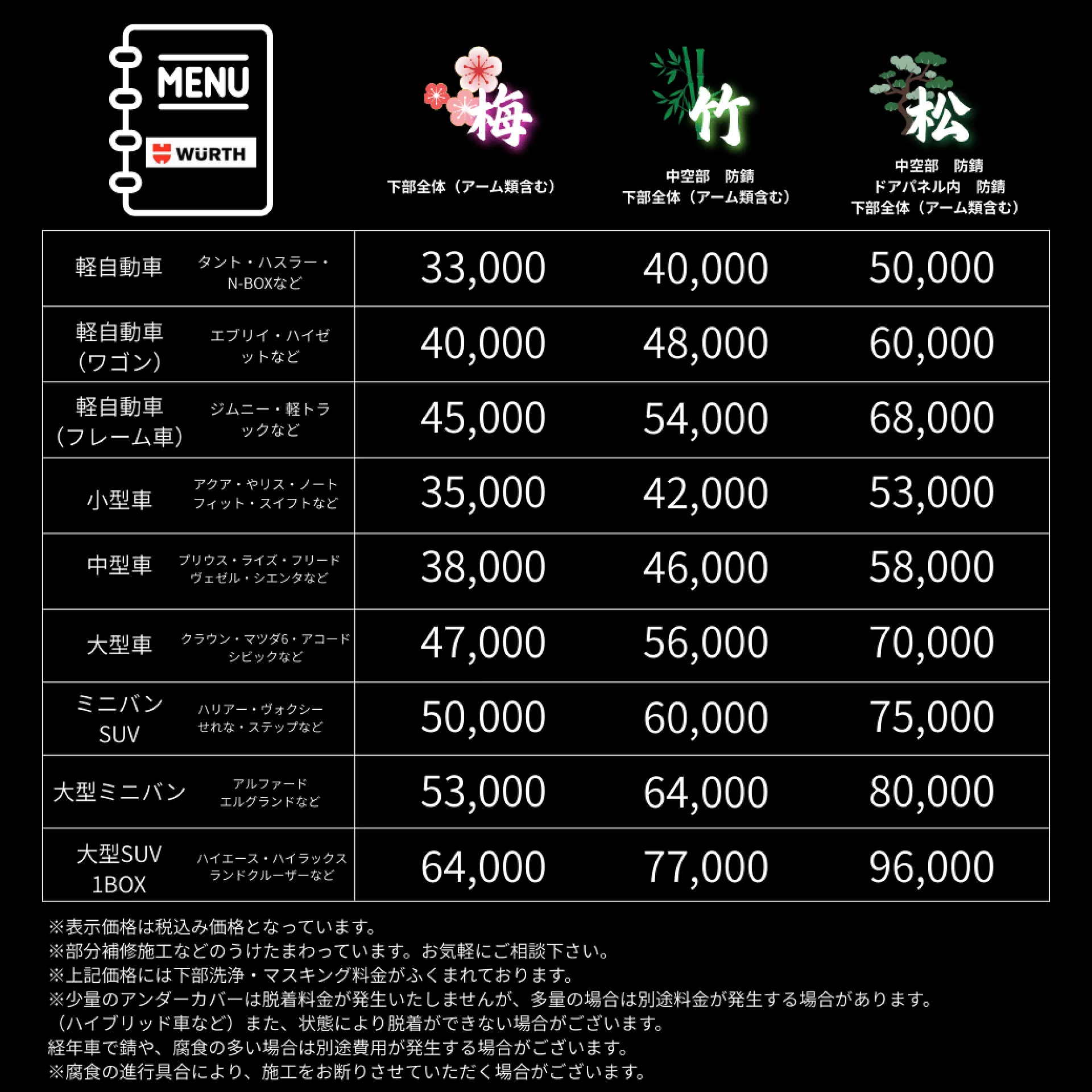 ②「下部防錆WURTH(ウルト)」または「キーパーコーティング」を施工していただいたお客様。